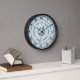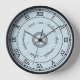 This bold, simple, classic clock design has a basic black Roman numeral design with a vintage look to it. It has circles and dotted circles, as well as a lined border around it. The background is a light blue with a slight marbled effect added. You can use the easy template to add a circle of text to the center, or delete the sample text to leave it blank. When you add text, be careful that you don't add too much or it will overlap on the bottom. You can also "customize it" to make any changes you would like. This is a pretty, antique-looking wall clock.
