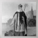Saint Patrick who drove the snakes from Ireland an image depicting him dressed as a bishop with the Bible, snakes and the Church in the scene. Vintage image in public domain.