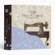 Cool decorative antique sewing machine makes a kitschy sewing or crafts pattern notebook binder; my old style black sewing machine has gold ornamental decoration, stitching through a neon red fabric; tiny polka dots background. Perfect for seamstresses, sewing or crafts officianado, for yourself or a crafter you admire.