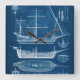 Antique Ship Blueprint I Square Wall Clock