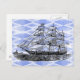 Antique Ship on Blue Postcard