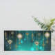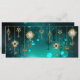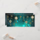 Gold, antique keys with gears and dials hang on gold chains on luminous green background.