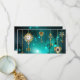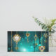Gold, antique keys with gears and dials hang on gold chains on luminous green background.