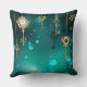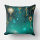 Antique Skeleton Keys on Green Background Throw Pillow