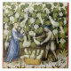 Ancient Medieval Italian miniature of squash harvest late 1390..Classic rural scene with green leaves and squashes..Part from " Season's Fruits ".This classic design with old aged brown parchment effects is perfect for nutritionists,dieticians,caterers, food service,preparation or restaurant ,catering industries.