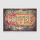 This vintage design centers around the word “COFFEE” in softly shaded, antique-style lettering that evokes the charm of an old world café. Set within an ornate floral frame, the background blends gentle gradients of rose pink, amber, gold, and dusty blue, creating a glowing effect. Whimsical golden flourishes curl through the corners and the overall mood is warm and romantic, making this an ideal choice for projects that blend elegance with a touch of nostalgia. Artwork similar to a pastel-painted sign with romantic vintage flourishes and bohemian softness…..COLOR COMBINATIONS: