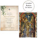 Elegant, hanging eucalyptus with delicate white flowers Orthodox Christian baptism invitation. (We also have matching baptism thank you cards). Customize all the products with your personal details as well as your preferred font / size / placement / color. PLEASE NOTE: most of the icons are very old. We work to make them clearer. However, please look at them carefully to see if the image's clarity is what you want.