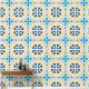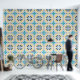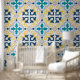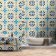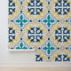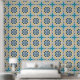 Vintage design, antique tile in a seamless pattern. White, yellow and blue tones geometric pattern.