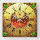 Antique Time,Shamrocks,Ruby Gemstones Gold Yellow Square Wall Clock