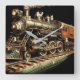Antique Train Engine Railfan Square Wall Clock