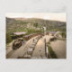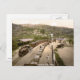 Antique Wales postcard view of steam engine & train with carriages at Ffestiniog station, Wales, England c1895. Digitally restored antique print.