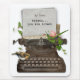 Clever typewriter image with a touch of added whimsy with a bird and floral accent. Customize your personal message.