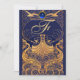 Antique Vessel,Dolphins,Gold,Navy Blue Monogram Invitation