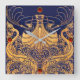 Antique Vessel,Dolphins,Gold,Navy Blue Nautical Square Wall Clock