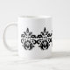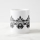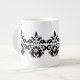 An elegant damask pattern in black surrounds a white jumbo mug. These mugs are great. I love mine.