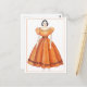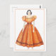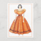 This postcard features a sketch/drawing of an antique Victorian doll in an orange dress.