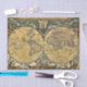 Elegant, stylish and chic customizable party and celebration invitations and accessories featuring a colorful antique world map dating from 1664 and created in Amsterdam by Joan Blaeu. It's displayed on a distressed tea stained look background.