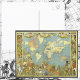 Vintage illustration antique world map featuring the British Empire, 1886, marked in the traditional color for imperial British dominions on maps. The text in the top banners reads Freedom, Fraternity, Federation and the map is surrounded by people and animals representing the international diversity of the globe. Artist: Walter Crane.