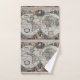 A great colored world map from the 1600s makes beautiful and interesting bathroom towels, or choose just the hand towel for the kitchen.