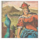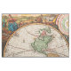 Antique world map from the 1700s with hemispheres in vintage colors and painting vignettes border.