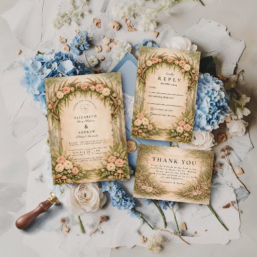 Plain white envelopes are included with paper invitations and will come to fit the invitation size you select. If you don’t need the envelopes, you may choose to not receive them by selecting the dropdown below "Envelopes" and choosing "None." If you’d like to have a design on your envelopes, you can browse all of these available envelopes to find the design that complements your Antler Botanical Rustic Wedding Invitation.