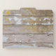 Hunter themed file folders with deer, buck, antlers design. Rustic wood design on all three folders in this set. Horizontal, light wood boards, with peeling paint, is the background for the various images. All three are solid mustard gold inside.