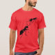 My 11 yo wore adult XL (5’7” 165#). The 8yo is small framed. She wore adult small and tied it in the back. Grandma wore adult large with long sleeve shirt underneath. Tall girl adult medium. Dark haired male adult large. Good quality dark Heather gray, Gildan brand shirt. -it was next up from basic choice and cost about $20 per shirt. Not too thick or thin. Washed and dried well, no major shrinkage. Not see-through. Can wear a bra under it fine. Screen print is just as shown and well done, front and back.