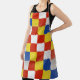 Great color and even though I ordered the kid size, it covers well enough to use during the holidays. I am not a big woman and prefer a shorter apron. I stand 5"6" and the length of the garment goes to mid-thigh. The tie straps fit well at my waist and even though there is no neck strap adjustment, the opening is plenty big enough. I am happy with the size and fit. I am sharing my apron with my 10 year old grandson, too! The color is vibrant and looks good, as shown on the website. The stitching looks strong and reinforced. Photographed is front side and back side of the apron, reinforced straps and coloring. My phone camera may not be the best at showing the details.
