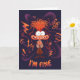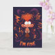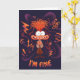 This illustration captures "Anxiety," a character from the Disney/Pixar movie "Inside Out 2," amidst a tempest of worry and panic. Dark, swirling shapes and jagged lines envelop the character, symbolizing the overwhelming nature of anxiety. The character's fiery red hair and wide, fearful eyes emphasize their distress, while their nervous smile and tightly clasped hands betray a struggle to appear calm. The phrase "I'm fine" poignantly contrasts with the intense emotions depicted, shedding light on the often hidden struggles with mental health.