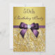 Any Age Birthday Gold Faux Sequins Purple Bow Invitation