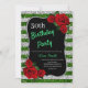 Any Age Birthday Green And Silver Glitter Red Rose Invitation