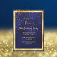On front: A trendy, modern 50th or any age birthday party invitation card for men. A dark blue, navy blue background. The blue color is uneven. With a faux gold frame and golden confetti, golden colored letters. Templates for a name, age and your party information. Back: white background.