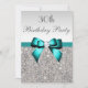 Any Age Birthday Party Silver Sequin Deep Teal Bow Invitation