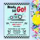 Any Age Birthday Ready Set Go Blue Race Car Invitation