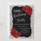 Any Age Birthday Silver Glitter Red Roses Invitation