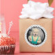 Any Age & Photo: Birthday Number Pattern Black Classic Round Sticker