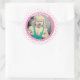 Any Age & Photo: Birthday Number Pattern Pink Classic Round Sticker