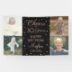 Celebrate a happy milestone birthday with a custom 4 photo pink and black party banner. (IMAGE PLACEMENT TIP: An easy way to center a picture exactly how you want is to crop it before uploading to the Zazzle website.) Design features four photos of your choice, modern script calligraphy customizable "Cheers to 30 Years" and rose gold faux foil confetti dots on a black background. Please note that text is printed color, not metallic foil. The modern typography message is simple to personalize to any age or to another occasion, such as an anniversary or retirement. This party sign backdrop is a stylish way to share favorite pictures while adding a personalized finishing touch to a special 30th (or other year) celebration for her. If there's any text not wanted, simply delete it.