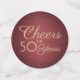 Add a personalized touch to birthday party decorations with custom burgundy and gold table confetti. This template is set up for a "Cheers to 50 Years" 50th birthday celebration, but is simple to customize for any number of years. The maroon red design features a modern faux brushed metallic background, elegant script calligraphy and stylish vintage typography. Please note that gold is printed color, not metallic foil. This festive table confetti adds a unique customized touch to a special milestone party for him or her. Cheers and Happy Birthday!