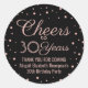 Add a personalized finishing touch to birthday party thank you notes or favors with custom pink and black round stickers / envelope seals. All text is simple to customize or delete. This template is set up for a 30th birthday for her, but can easily be changed to another year or event, such as an anniversary. Design features pink rose gold faux foil confetti dots on a black background, stylish script calligraphy "Cheers to 30 years," and modern minimalist typography customizable message at bottom. Please note that pink is printed color, not metallic foil.