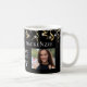 Celebrate any age birthday for him or her with this black, gold and white commemorative keepsake mug featuring a calligraphy script typography design stating # YEARS IN THE MAKING that incorporates their age and established birth year within the design, personalized with 2 photos (perhaps Then and Now photos), your custom text and accented with gold streamers, confetti and lights. ASSISTANCE: For help with design modification, personalization, color change or transferring the design to another product, contact the designer BEFORE ORDERING via Zazzle Chat or makeitaboutyoustore@gmail.com.