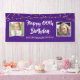 Celebrate ANY birthday and welcome party guests with this purple and white banner sign featuring two photos (perhaps THEN and NOW photos) and a border of string lights. EDITABLE COLOR: The purple background color can be changed to coordinate with your party color scheme by clicking on CUSTOMIZE FURTHER. PHOTO TIP: For fastest/best results, choose a photo with the subject in the middle and/or pre-crop it to a square shape BEFORE uploading. Contact the designer via Zazzle Chat or makeitaboutyoustore@gmail.com if you'd like this design modified, on another product or would like coordinating items.