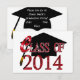 Elegant "Class of 2014" graduation party, invitations, or announcements. Cool red graphic with "Class Of 2014" really stands out on a black big graduation cap and gold tassel all on a clean white background. Easily add your custom text to the back of the card. You can even change the white background on the front and /or the back to any color. Just click on "Customize it" and then "edit" and then "background" to change it. Remember the special occasion with these custom graduation invitations, suitable for kids, teens, men and women of any age. Nice for both junior or senior high school graduates as well as college grads.
