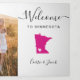 Welcome guests to your wedding with this tri-fold card. There is plenty of room to include your itinerary, restaurant suggestions, things to do, and contact info. There is space for a photo on the back of the card. All text may be customized, including the heading. You may edit the colors for any part of this design, as well as move the heart to the location of your wedding. To change colors, click personalize and then "edit using the design tool." Select the element you wish to edit, then use the tools to make the changes.
