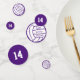 Choose your own background color! This custom volleyball birthday party confetti features a simple volleyball graphic with white panels, upon which you can customize your text - the volleyball's seams are represented by a purple background, which you can easily customize to ANY color and then customize the text color to match - by katz_d_zynes