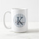 This modern monogram coffee mug features a soft striped circle with an oversized initial paired with an elegant script name overlay, creating a look that feels both timeless and personal. The clean layout and subtle pattern give the design a refined, boutique-style aesthetic that works beautifully for everyday use or as a thoughtful personalized gift. Shown in blue, gray, and espresso; though all colors are fully editable, allowing you to customize the stripes, monogram letter, and name to match your personal style or coordinate with your favorite color palette. © Kimbellished, LLC