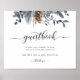 Elegant guestbook sign with the ability to change text to suit any event. Exquisite hand painted watercolor floral design on top with foliage and pine tree in blue, navy blue, sage, gray and green tones. Use of hand written modern Calligraphy details and block typography. Coordinating guestbook available. Part of our "Rustic Blue Mountains" wedding and events collection.