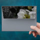 Beautiful subtle Gothic touches for this any event envelope from the color of the envelope outside to the gray brocade pattern on the inside. It's finished with the dark floral on the outside flap. Return address of the senders is on the front. If you wish, you can delete the "TO" on the front.