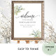 Elegant wedding (or any other event) Welcome vertical sign with exquisite watercolor greenery Eucalyptus corner details in a beautiful blend of green, blue, beige, yellow tan, and orange hues. Welcome to attractive modern handwritten calligraphy. 8" x 10" is only our default size, the sign is available in a variety of size options. IMPORTANT NOTE: This sign is in premium poster paper style, easy to frame or glue/staple to inexpensive MDF or foam board for display. If you prefer this sign prepared for display already on a foam board, please follow these easy steps: on this sign product page, scroll up, until you see a section with images called "Transfer design to a product". Use the arrow on the images to look at all the options, until you reach the "Foam Boards" option. Click on it to transfer the design into a foam board for you. Initially, sometimes it transfers the design into a very big foam board size, nevertheless, you can change the sign into the size you need on the product page and even see how it looks already in a stand. Adding this design to your shopping cart will tell you the back side is blank. Don't worry about it, as this only means that the back of the sign will be white. If you need help, please send me a message and I'll get back to you as soon as possible". Design part of our "Elegant Greenery Eucalyptus Wedding and Events" collection with a variety of coordinating products available.