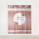 Elegant rose gold floral Photo backdrop tapestry with area for your name(s) and your event. Ideal for weddings, bridal and baby showers, brunch, birthdays and anniversaries. Faux rose gold glitter background and gorgeous hand painted watercolor border on top with flowers and foliage in a mixture of blush pink, dusty rose, peach, ivory, slate cloudy dusty blue, gray and sage green tones. Hand written Script details. Name(s) and event text surrounded by circular rings with floral bouquets. Coordinating invitations and variety of event products available. Part of our "Ethereal in Blush Pink" wedding and events collections.